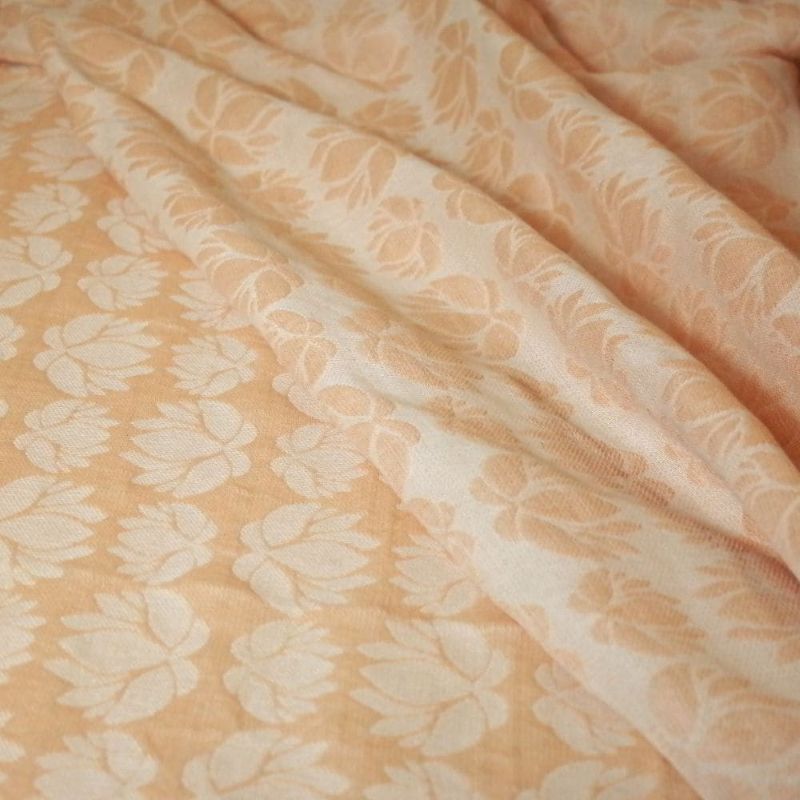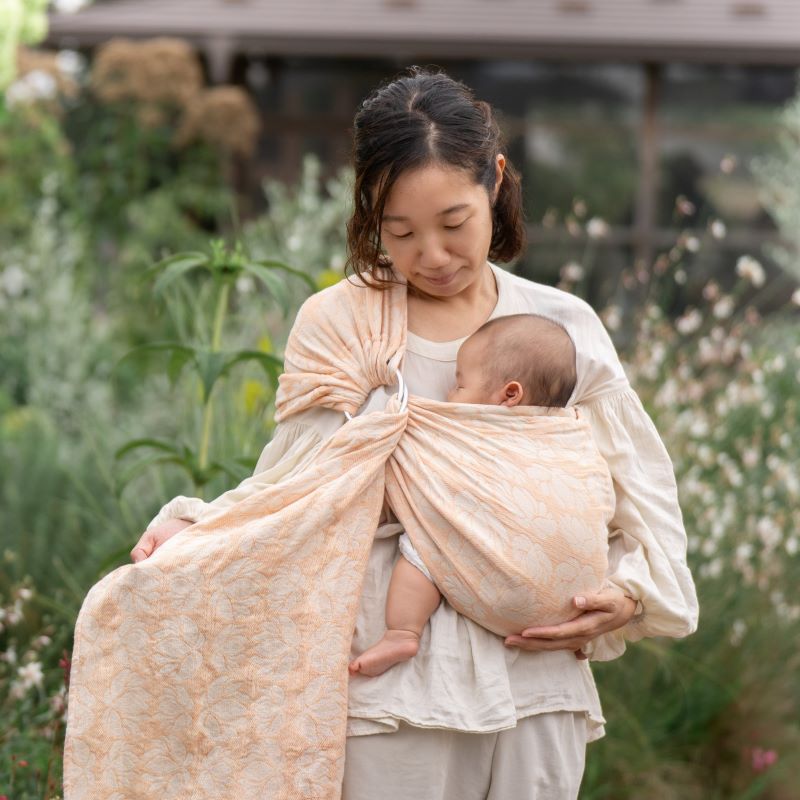 やわらかな朝の光が蓮の花びらをそっと照らすように――ロト ルーチェ は、アプリコットの優しい色合いとナチュラルな生成りを組み合わせ、あたたかさと透明感に満ちた調和を描き出します。軽やかで光をまとったような色のゆらぎは、立ち止まり、五感で抱っこを楽しむひとときへと誘います。