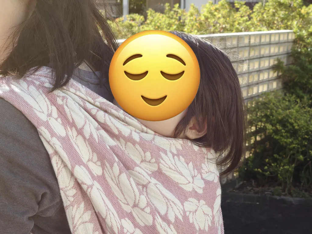 赤ちゃんがぴったり密着し、 体重を大人の上半身全体にバランスよく分散します。その安定感は産後ママの身体に優しく、幅広の布が肩や骨盤への負担を大幅に軽減します。長時間の抱っこやおんぶも楽々、両手も自由になります。