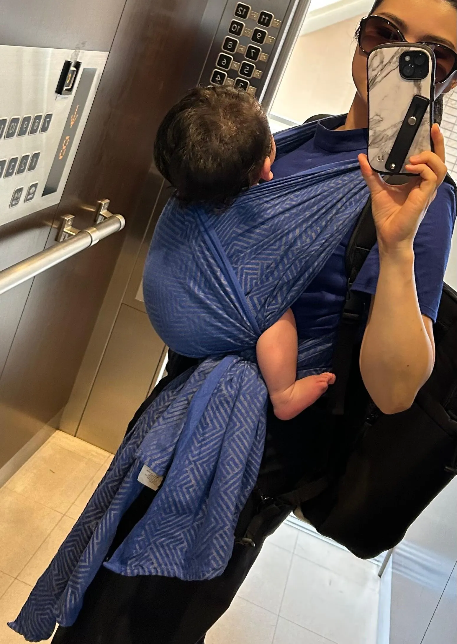 赤ちゃんがぴったり密着し、 体重を大人の上半身全体にバランスよく分散します。その安定感は産後ママの身体に優しく、幅広の布が肩や骨盤への負担を大幅に軽減します。長時間の抱っこやおんぶも楽々、両手も自由になります。