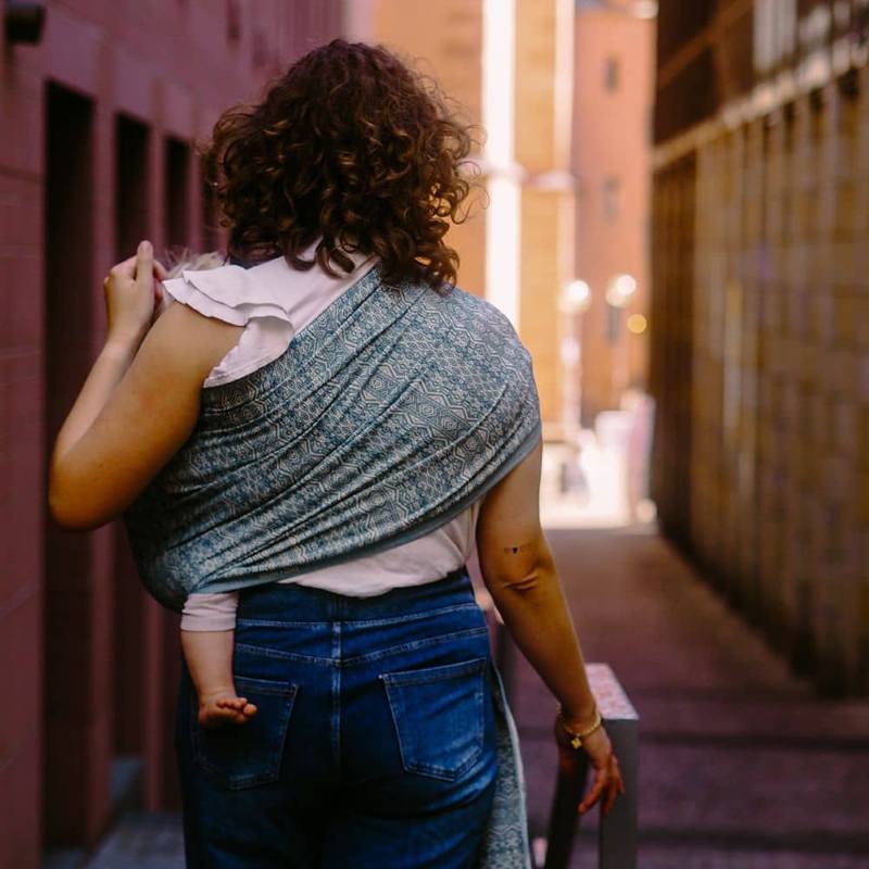 上質な織地でできたディディモスのスリングは赤ちゃんがぴったり密着するように引き締めやすい。肩から背中まで布を大きく広げて上半身に赤ちゃんの体重を分散させることで、ママパパに安定性の高い快適な抱き心地を実現。