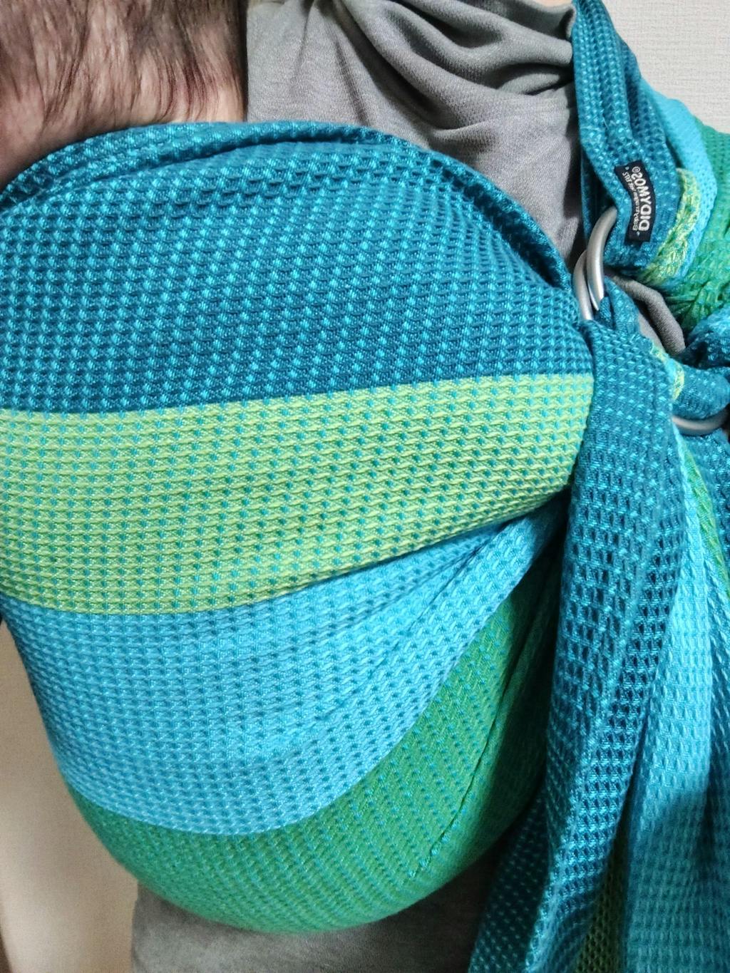 織り布の耐荷重は300Kg、スリングリングの耐荷重は1200Kg以上と、非常に丈夫で体重制限はありません。大きな子を抱っこしても肩に布がくい込むことも少なく、手軽に装着できるスリングはお出かけや旅行中に大活躍!
