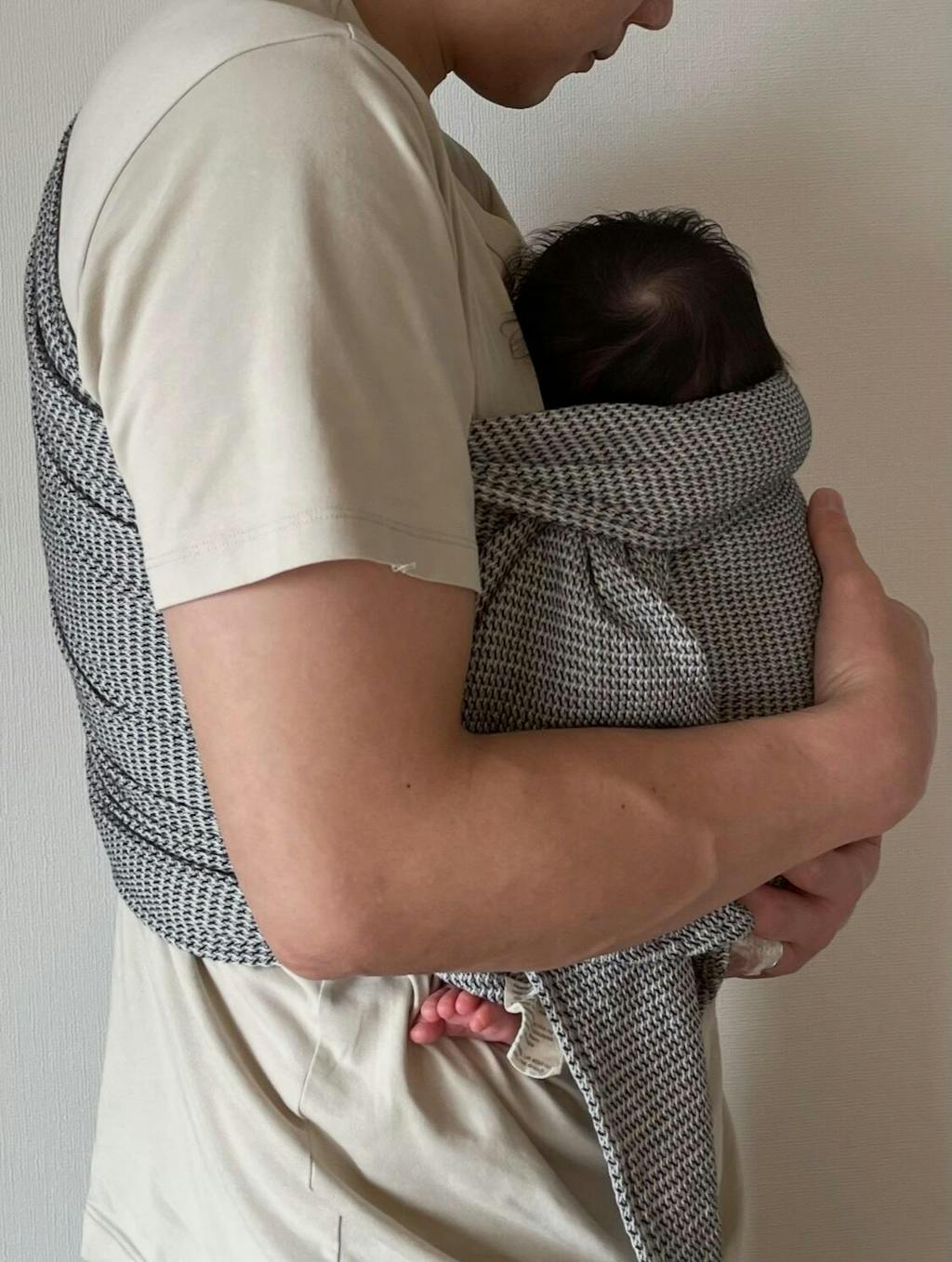 上質な織地でできたディディモスのスリングは赤ちゃんがぴったり密着するように引き締めやすい。肩から背中まで布を大きく広げて上半身に赤ちゃんの体重を分散させることで、ママパパに安定性の高い快適な抱き心地を実現。