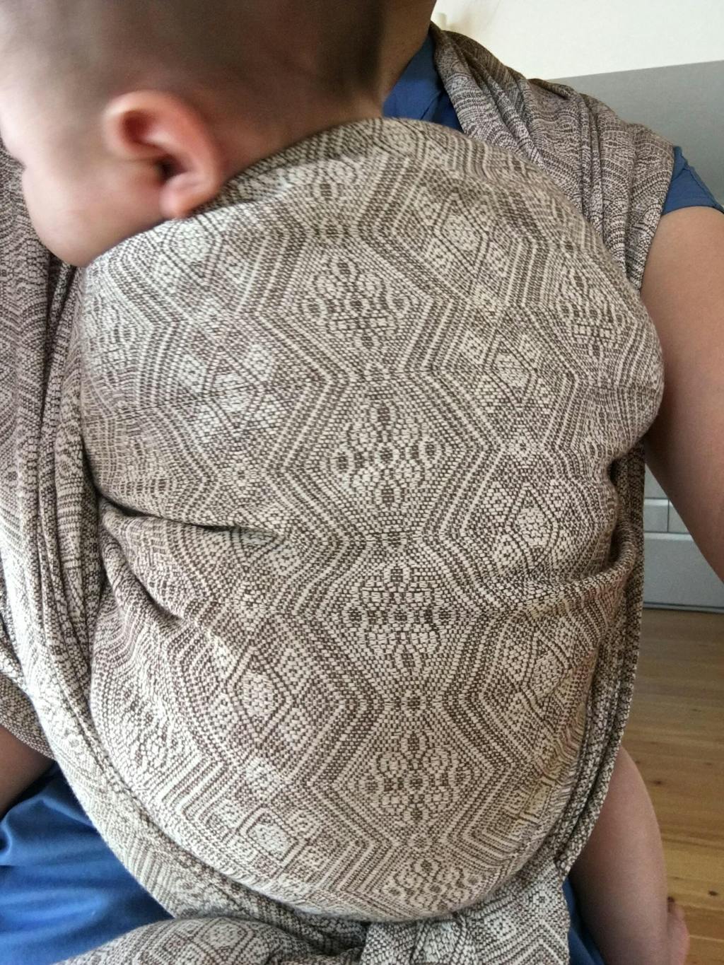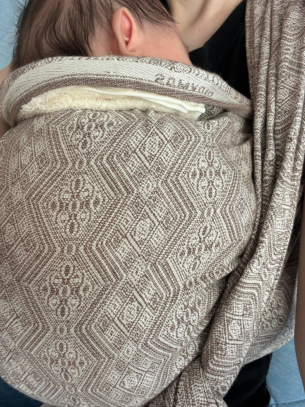 ベージュのジャガード織でヘンプ混の一枚布の抱っこ紐