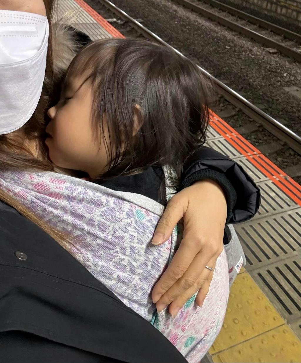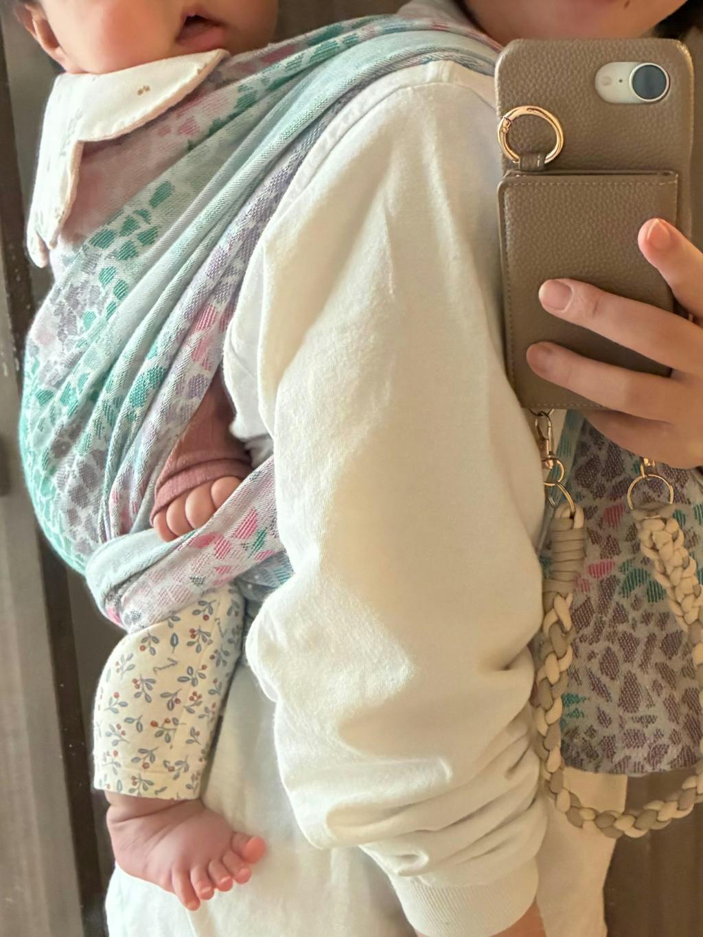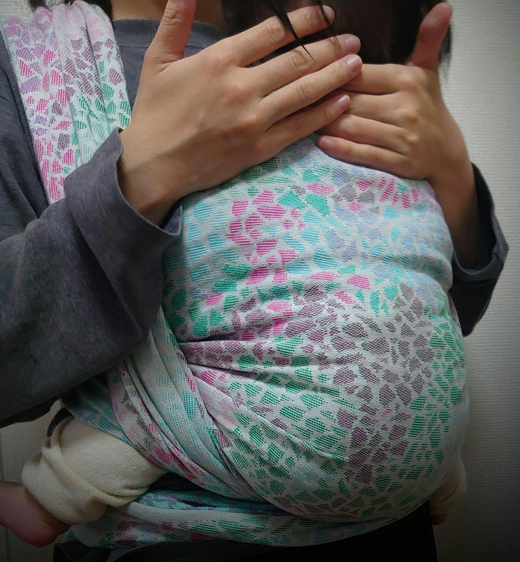 赤ちゃんがぴったり密着し、 体重を大人の上半身全体にバランスよく分散します。その安定感は産後ママの身体に優しく、幅広の布が肩や骨盤への負担を大幅に軽減します。長時間の抱っこやおんぶも楽々、両手も自由になります。